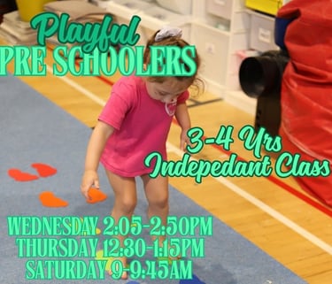 Children attend the class on their own and each weekly class will include themed activities that teach gymnastics shapes and skills and build on skills on apparatus. Activities also build and develop co ordination, cognitive function and social skills.